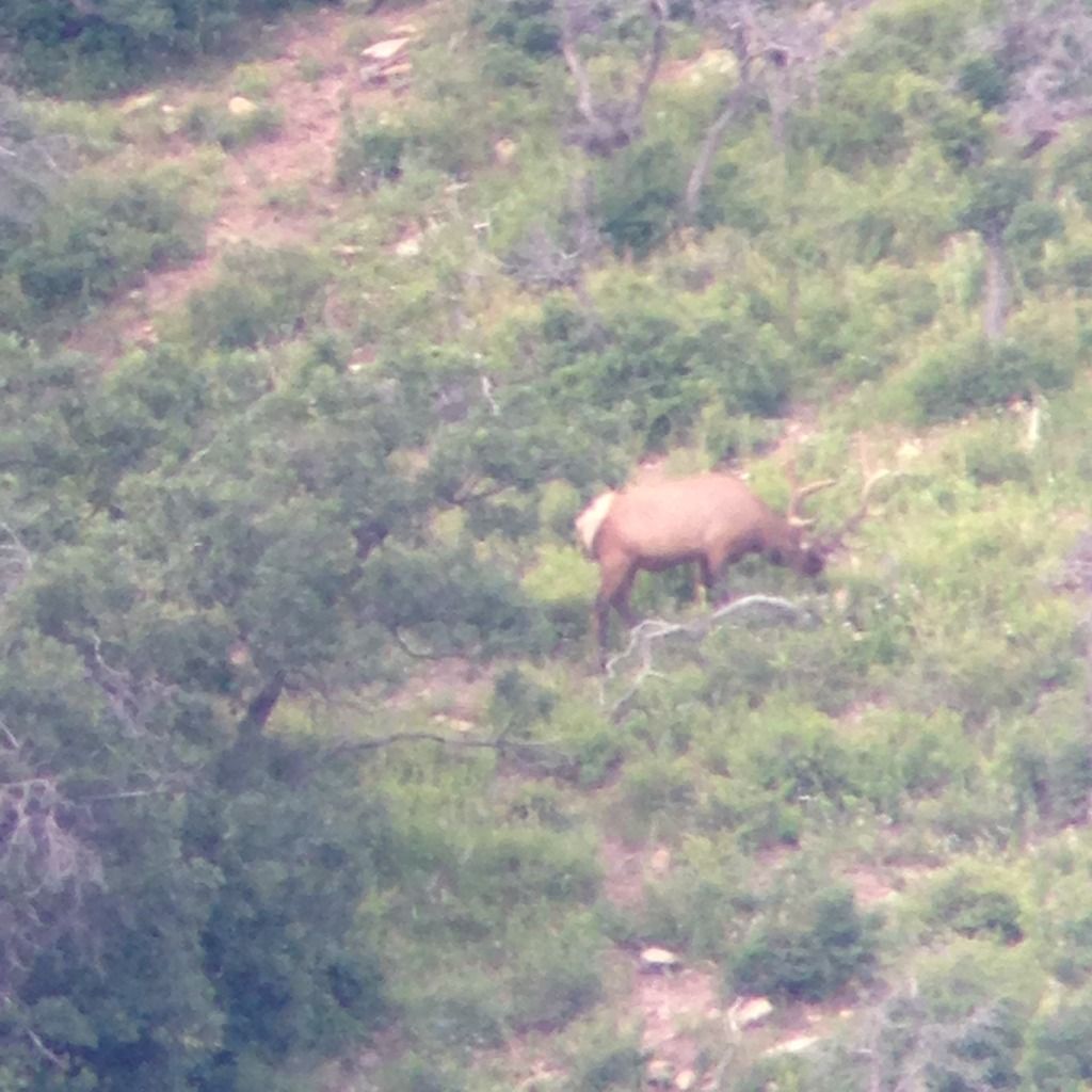 I went up last Thursday night, got camp set up around 11:30 p.m. Alarm went off at 5 and out I went. Set up 5 game cameras on Friday, one tree stand and reconstructed 1 ground blind. I also prepped one spot for a tree stand. Didn\'t see any animals other than a couple deer. This isn\'t uncommon, I take my dog with me when I go and she pretty much runs 100-200 yard circles around me, basically clearing the area of all big game animals. I don\'t take her in August when I am checking cams close to the season but this early on she gets to run. I did see 3 branch bulls not far from camp driving in on Thursday night.